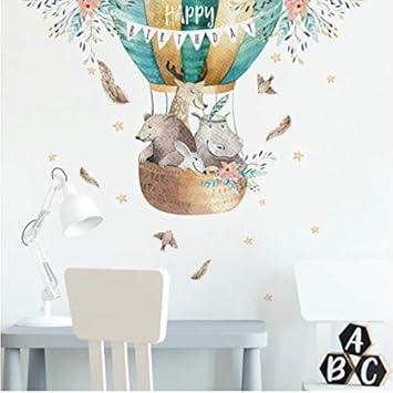 Cartoon Watercolor Safari Animals Wall Stickers Hot Air Balloon Wall Decals For Kids Room Baby Nursery Home Decoration Pvc Decor Amazon Co Uk Diy Tools - A wide variety of balloon wall stickers options are available to you, such as use, material, and style.