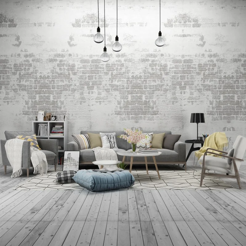 Gray Brick Wall Living Room May 17, 2021Entertainment Gray Brick Wall Living Room : Built in around fireplace with vaulted ceiling.