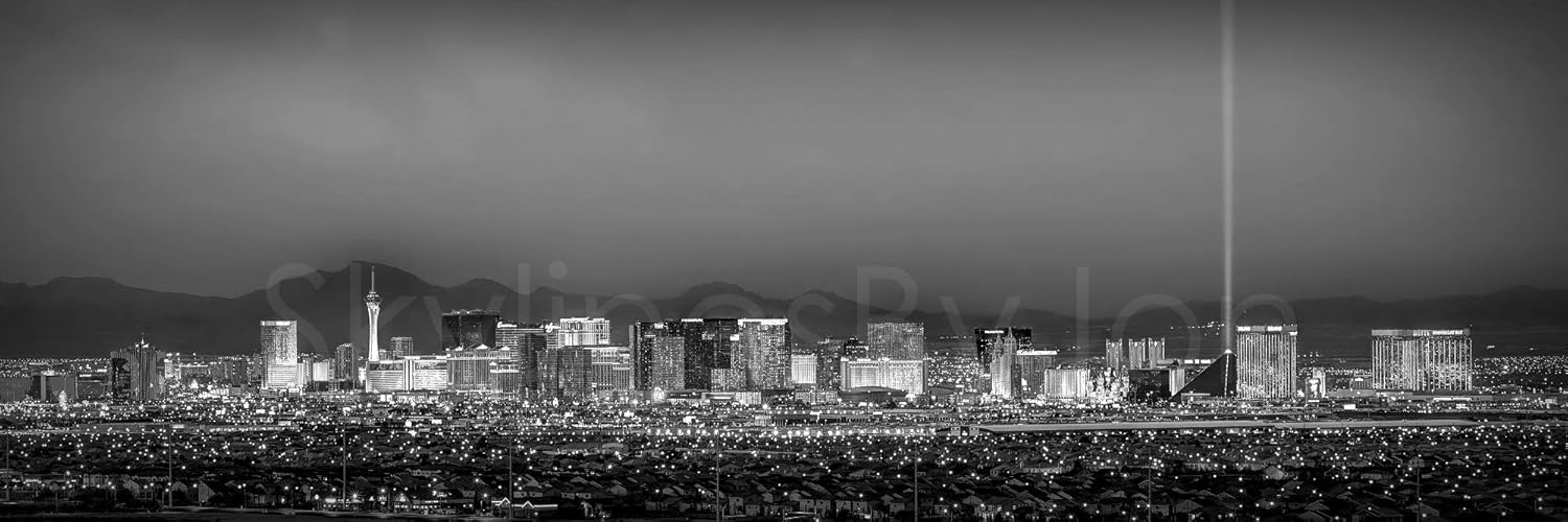 Amazon Com Las Vegas Skyline Photo Print Unframed Dusk Bw Black White City Downtown 11 75 Inches X 36 Inches Photographic Panorama Poster Picture Standard Size Posters Prints - Fremont street las vegas nevada 1940's las vegas club.