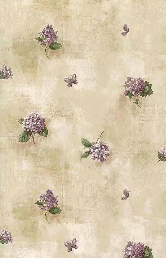 Purple Lilacs Vintage Wallpaper Beige Floral Green Butterflies Etsy - Photo from gallery photos with flowers.