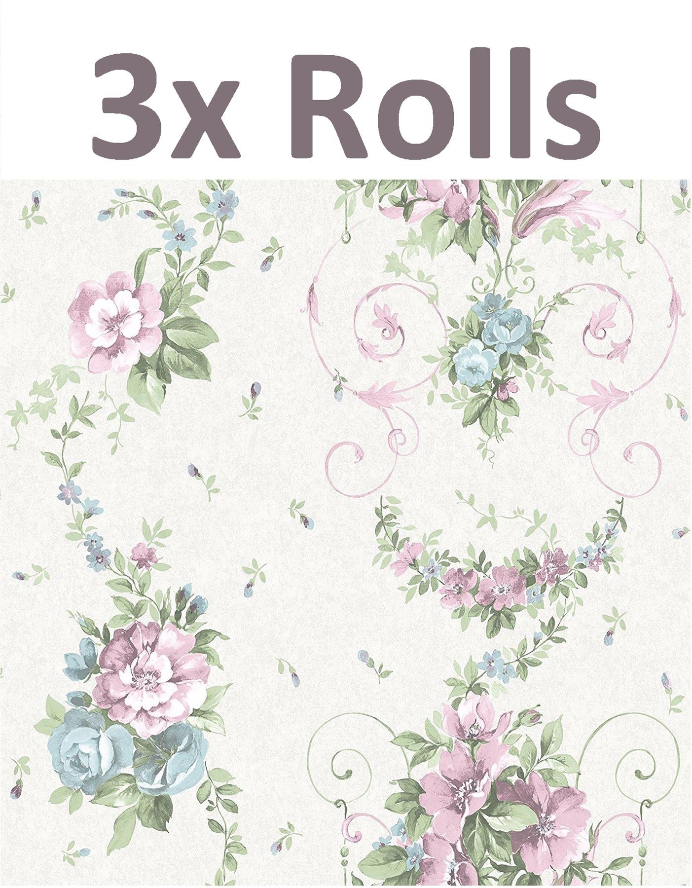 Floral Wallpaper Rose Lilac Blue Green Cream Metallic Shimmer 3 X Rolls Ebay - Looking for the best wallpapers?
