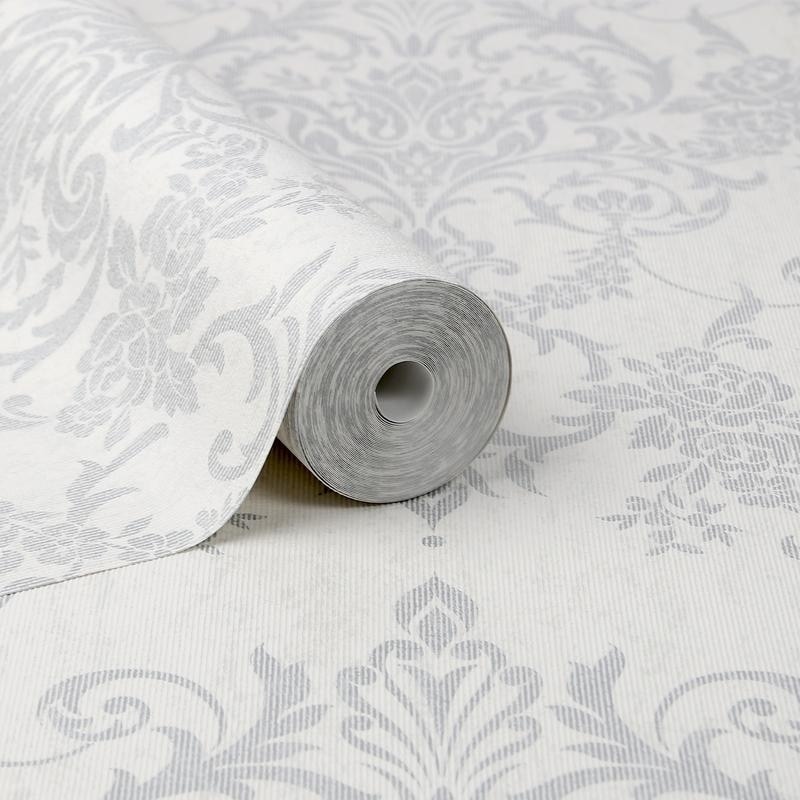 Victorian Damask Wallpaper Silver May 05, 2021Entertainment Victorian Damask Wallpaper Silver / Dark lilac grey wallpaper with large metallic silver paisley design.