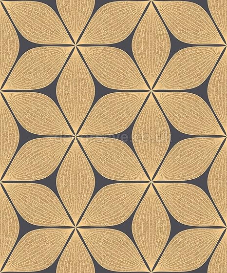 Coloroll Vibration Wallpaper September 04, 2020Entertainment Coloroll Vibration Wallpaper : A large scale, retro style gold flower with glitter highlights on a black background.