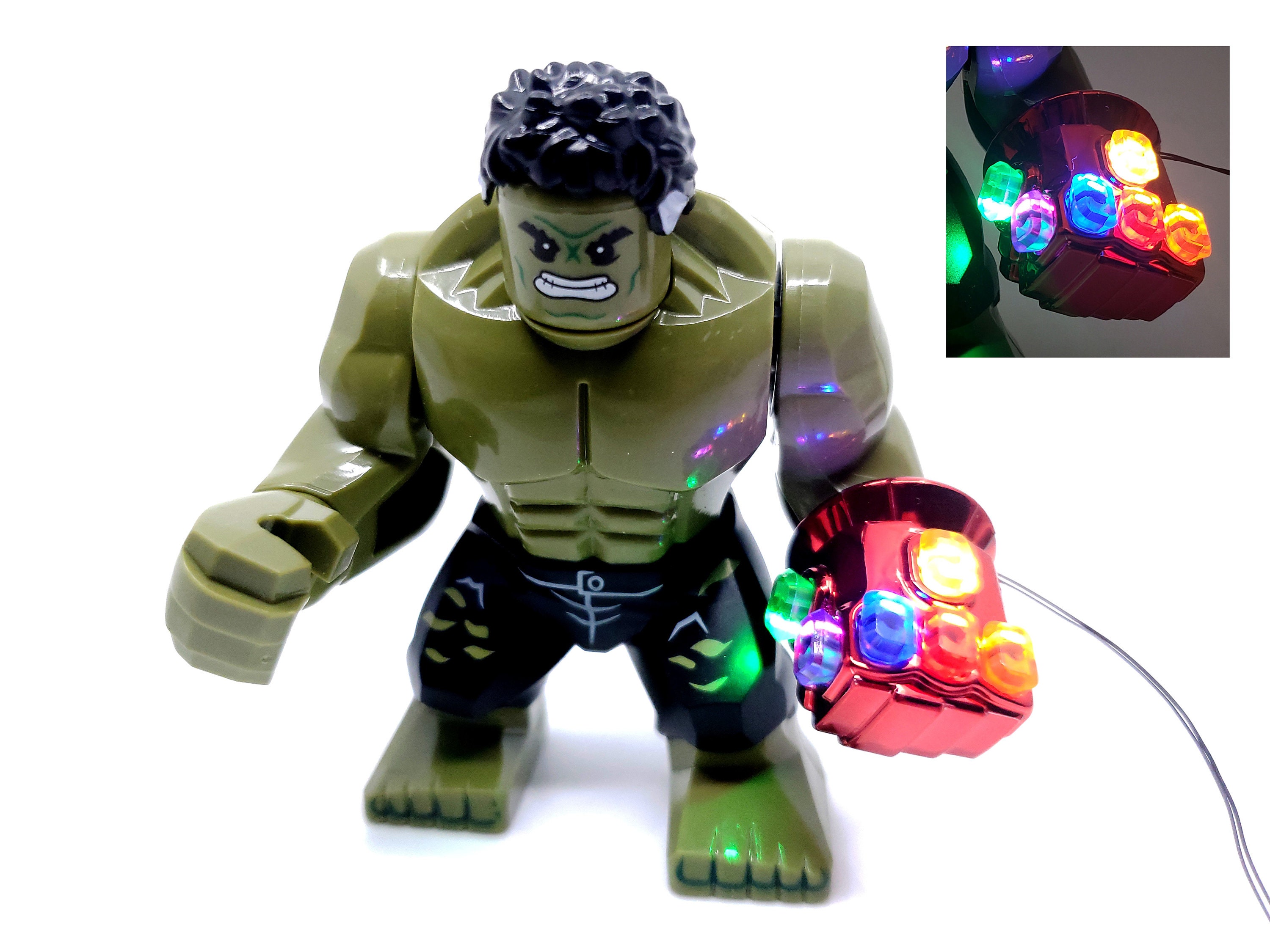 Hulk Minifigure With Led Light Up Nano Gauntlet Endgame Etsy - Thanos has the infinity gauntlet with all six stones.