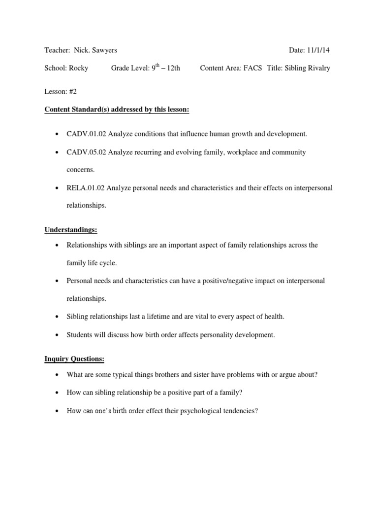Content Standard S Addressed By This Lesson Sibling Quality Of Life - The traumatic effects of narcissistic personality disorder on siblings.