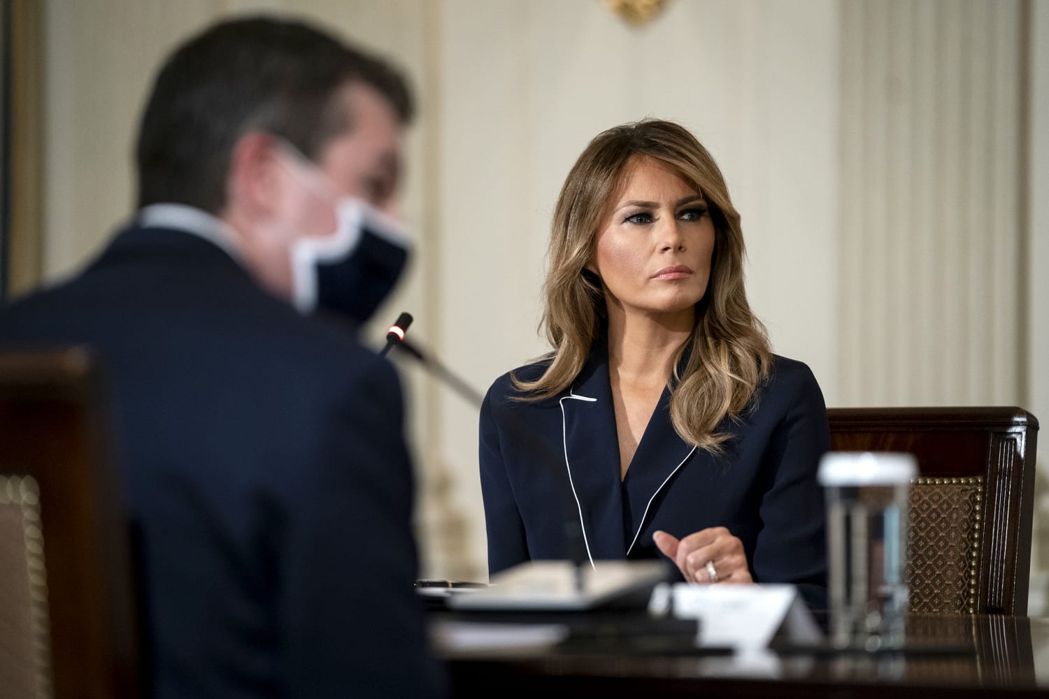 Melania Trump S Wardrobe Goes Mute The New York Times - Melania trump's blue suit pattern.
