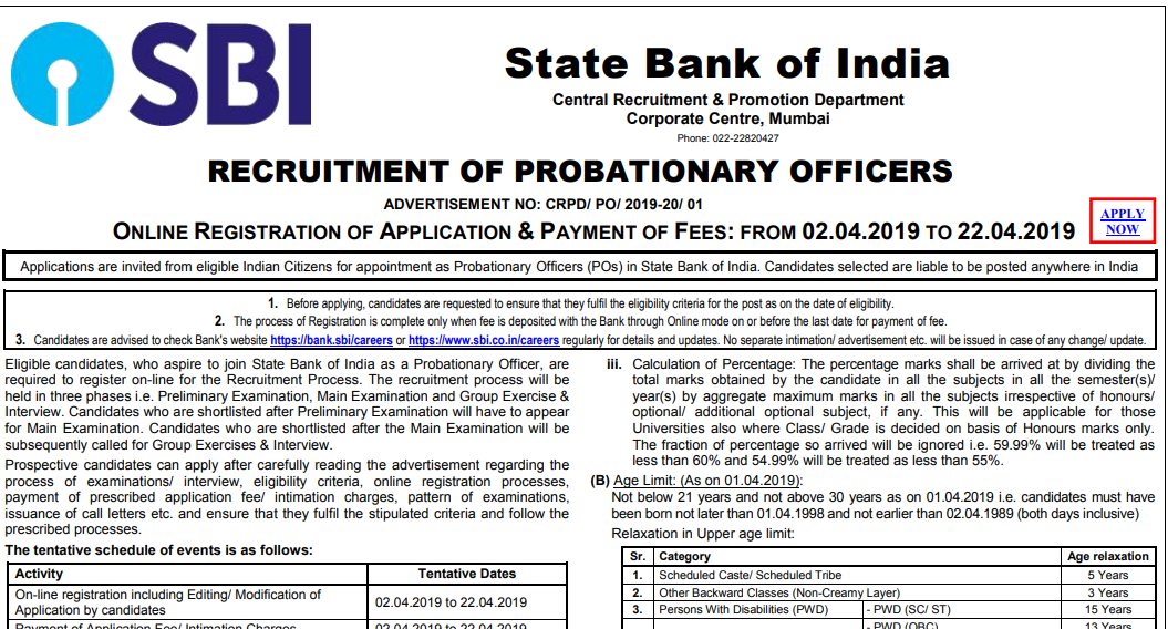 Sbi Po Notification 2019 Released Apply Online Up To April 22 Times Of India - Sbi po apply online 2020: